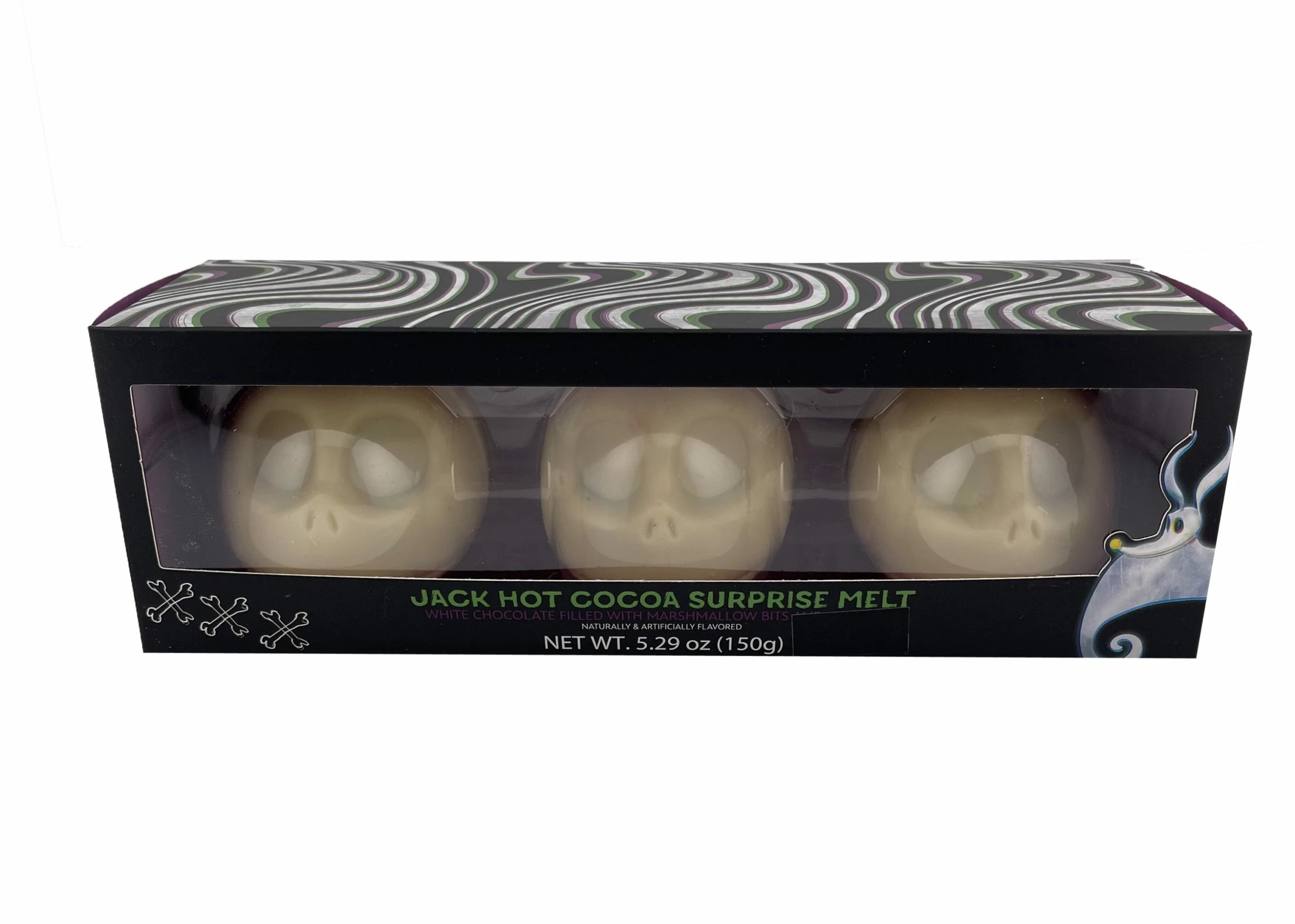 I hope you are in for a surprise with these set of 3 delicious Jack SKellington Hot Cocoa Surprise Melt. These Jack Skellington are White Chocolate filled with marshmallow bits.