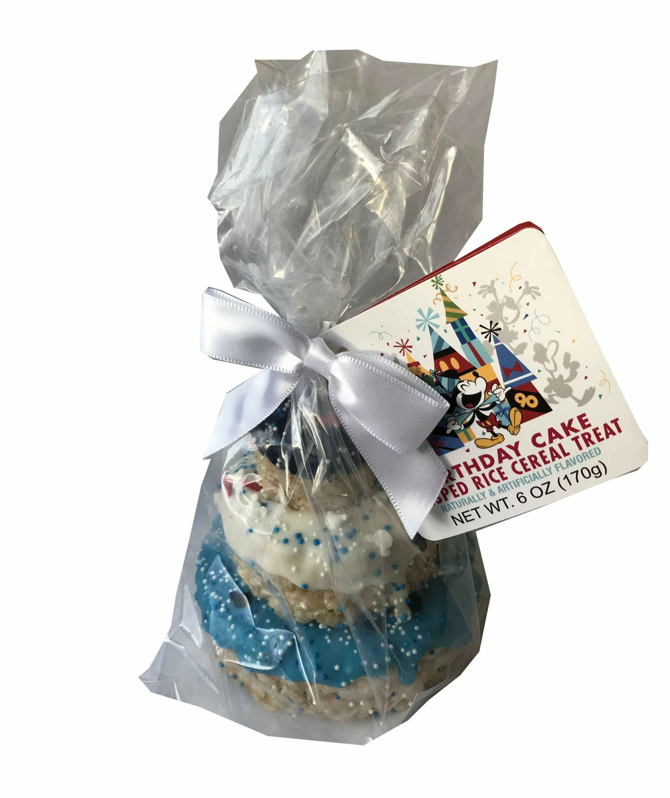 Help Celebrate Mickey’s 90th Birthday with this 3 tier Rice Crispy Treat Cake. Blue and White with Sprinkles.