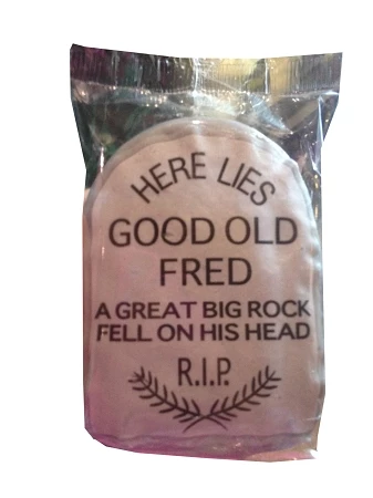 from Walt Disney World, and Features a Tombstone that says, Here Lies Good Old Fred, A Great Big Rock Fell On His Head. R.I.P